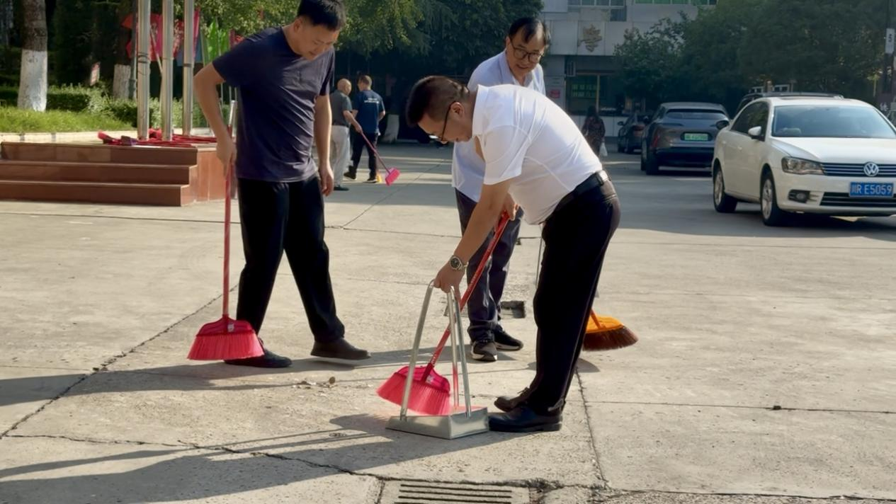 2025年9月1日上午8:30,南充十一中校园内一派热火朝天的劳动景象。学校行政领导干部和教师职工全员出动,开展新学期校园环境卫生大扫除活动,以清新整洁的校园环境迎接新学期的到来,以实际行动践行育人初心。
