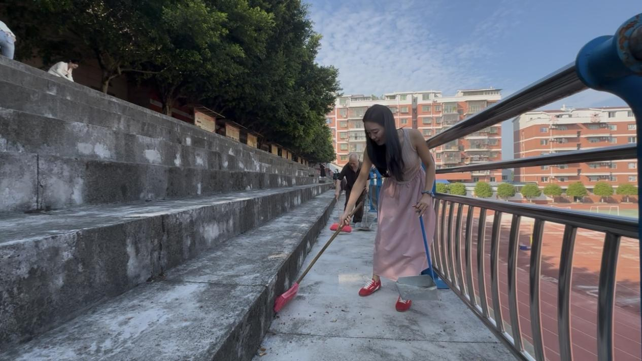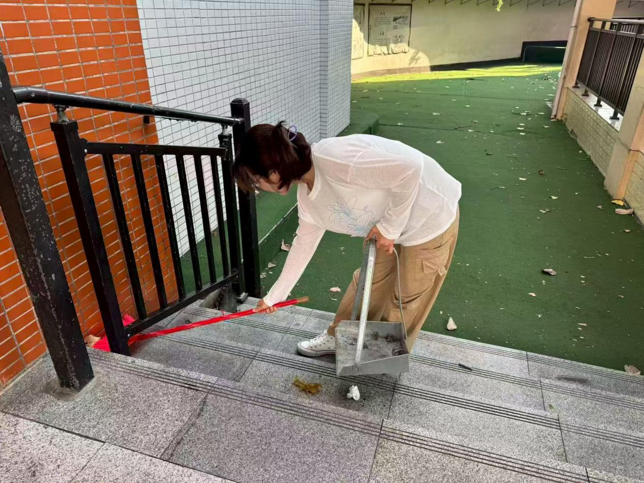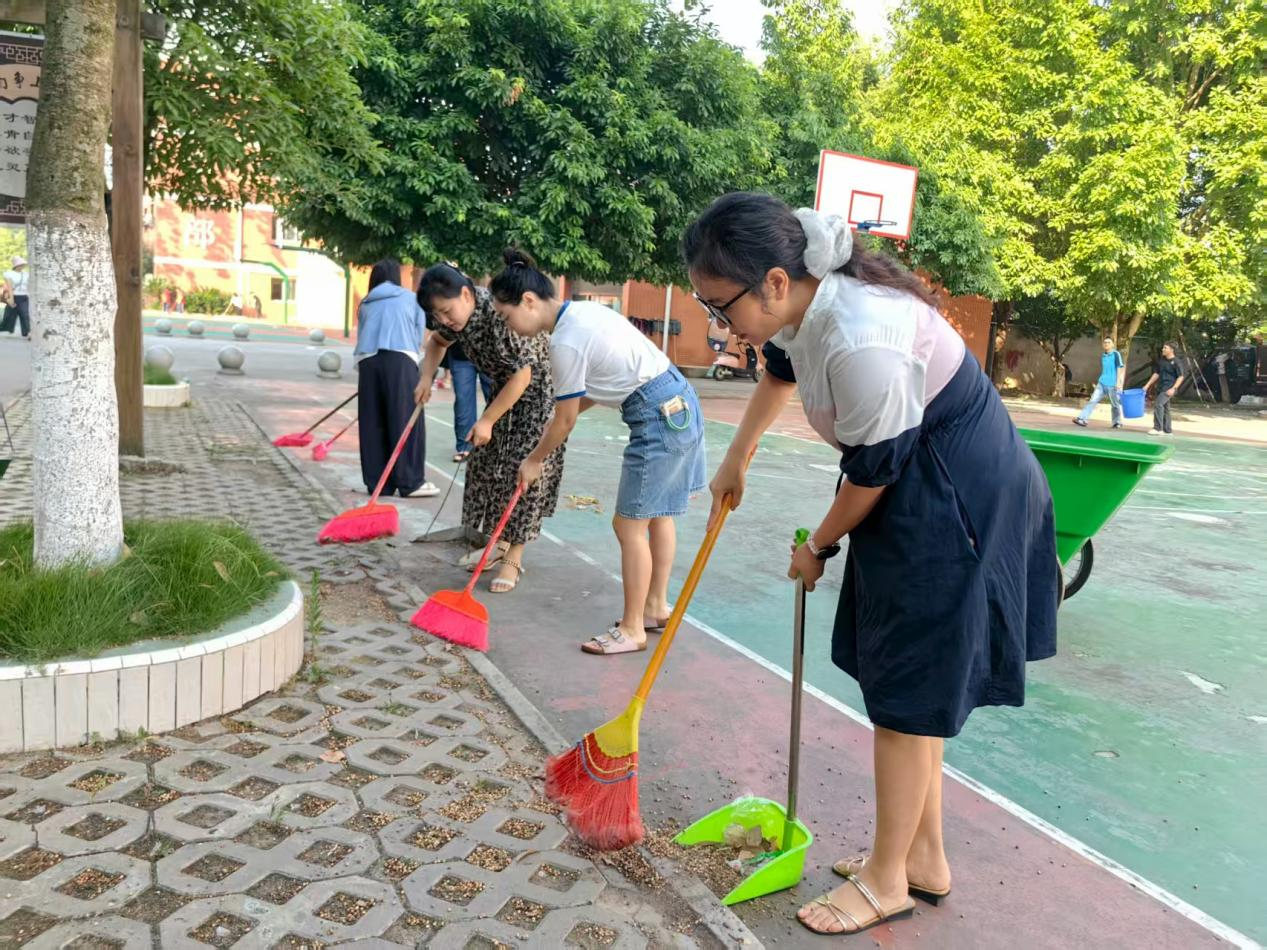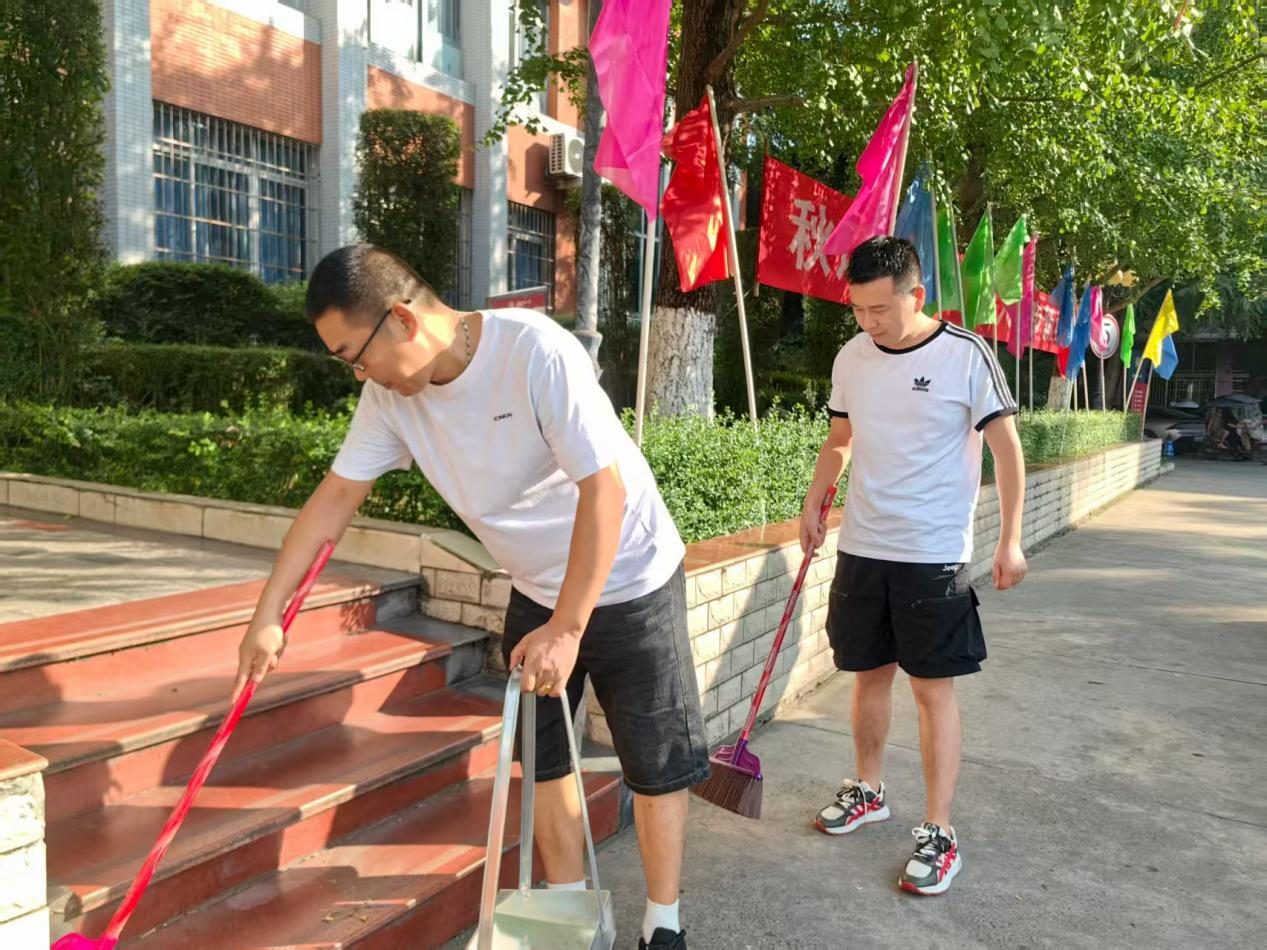 尽管天气炎热,但每位教师都干劲十足,相互配合,默契协作。有的清扫落叶,有的擦拭栏杆,有的清理垃圾,不放过任何一个卫生死角。经过两个多小时的共同努力,整个校园焕然一新,呈现出整洁有序的新面貌。